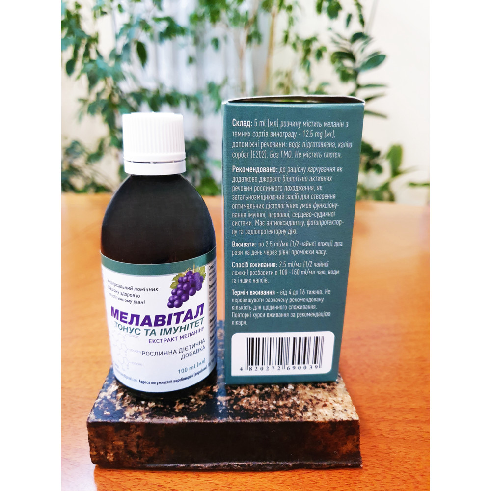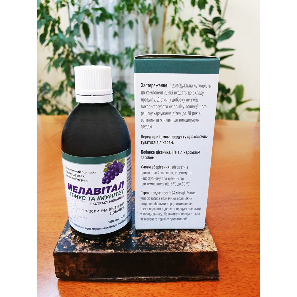 Меланін- натуральний продукт органічного походження з винограду чорних сортів, який належить до пігментів - поліфенолів, який за своєю антиоксидантною дією перевершує багато із відомих антиоксидантів (екстракт зеленого чаю, ресвератрол, лікопін, вітаміни Е, С та ін).